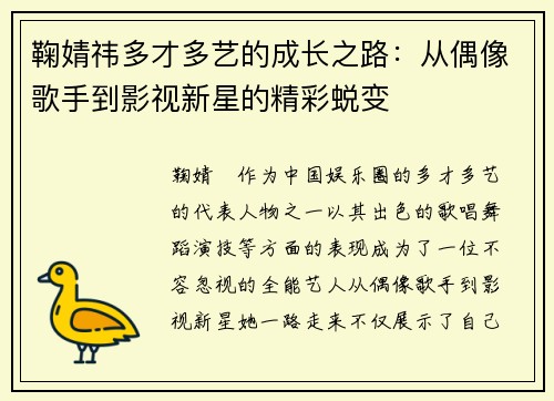 鞠婧祎多才多艺的成长之路:从偶像歌手到影视新星的精彩蜕变