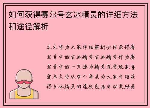 如何获得赛尔号玄冰精灵的详细方法和途径解析